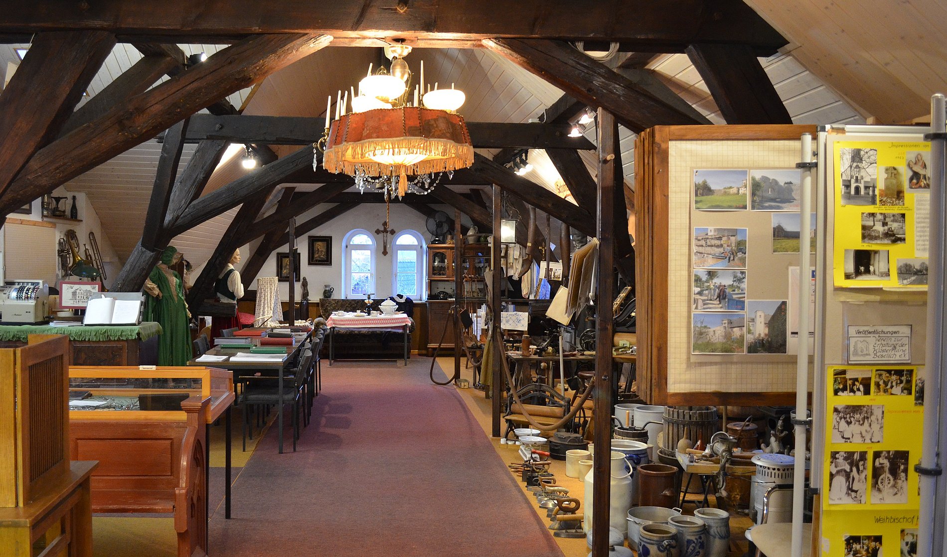 Vielzahl an Dokumenten, Fahnen, Fotografien, Büchern und Ortsplänen