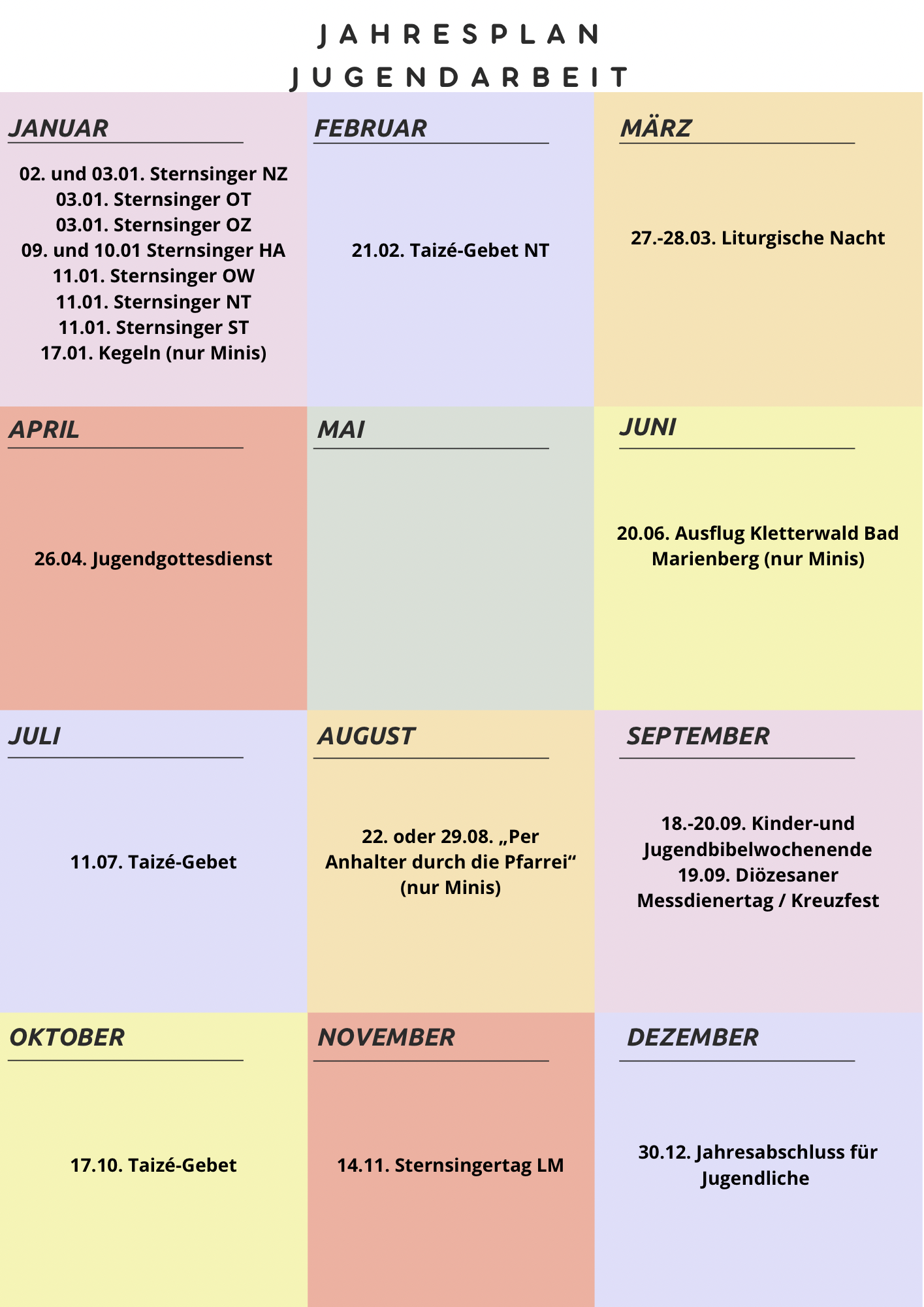 Der Jugendausschuss hat die Termine für 2026 zusammengestellt